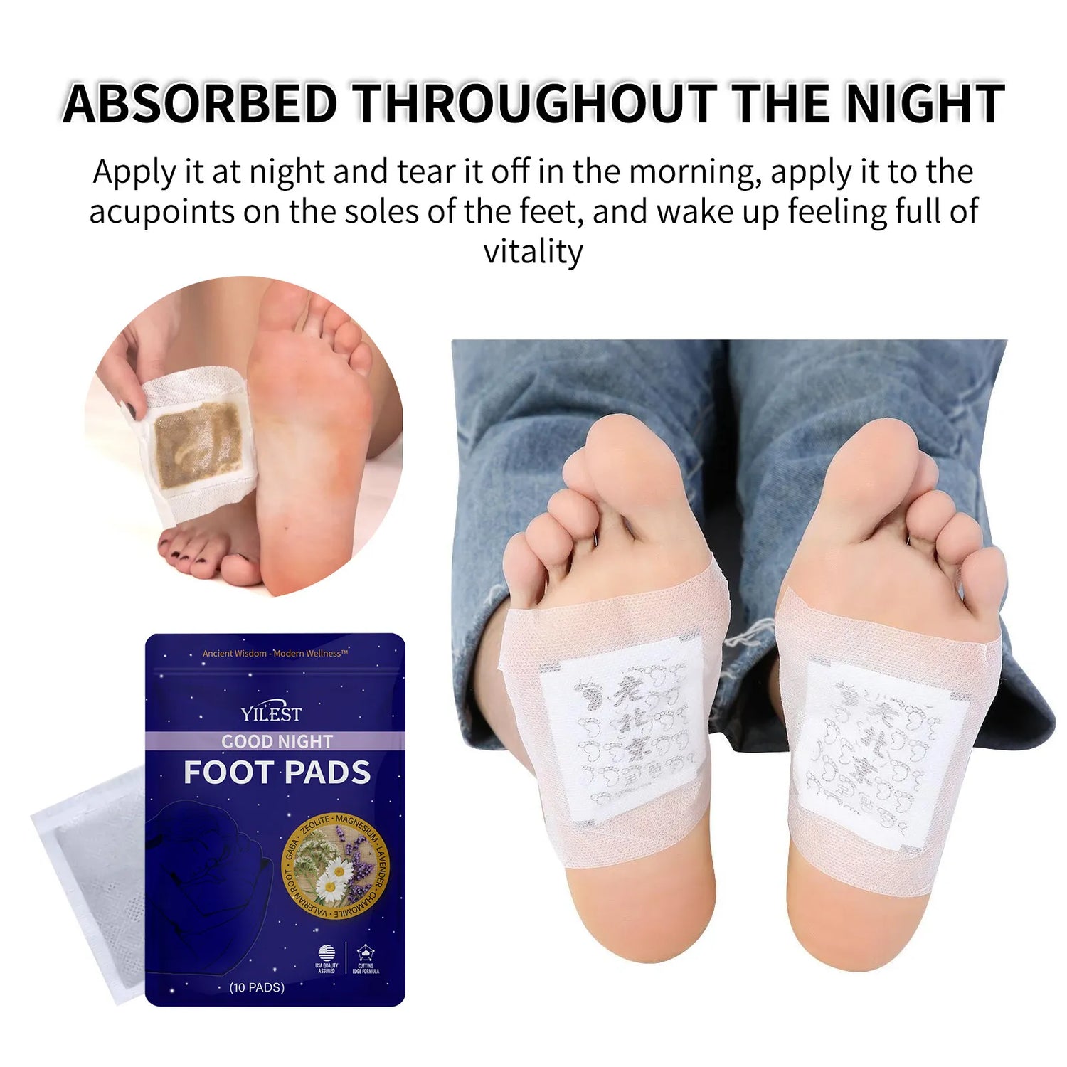 The Herbal Foot Pads - Detox are designed to support relaxation by soothing tired feet and helping your body unwind before bed. Many customers find that using them as part of a nightly routine helps reduce restlessness and makes it easier to fall asleep.